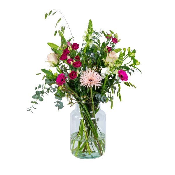 Bloemen zijn een seizoensproduct waardoor ze elk seizoen weer anders van uitstraling zijn. De bloemen in het boeket kunnen afwijken van de afgebeelde foto. Dit is afhankelijk van de beschikbaarheid. Bij het samenstellen van het boeket worden zo gelijk mogelijke bloemen/kleuren gebruikt.