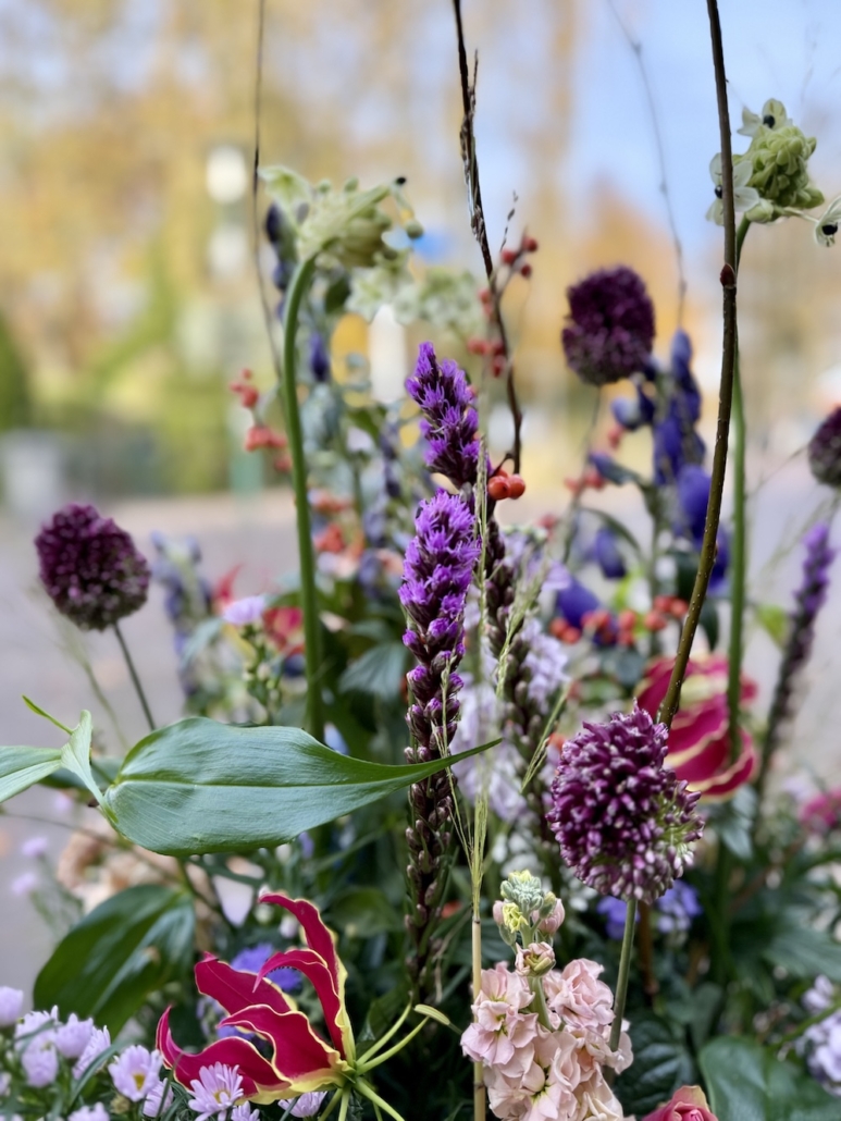 Zo maken we wel eens bloemwerk in Twentse stijl! Onlangs maakten we een persoonlijk rouwarrangement met de midwinterhoorn en de klompen van de overledene er bij in. Zo maken we het passend bij de persoon.